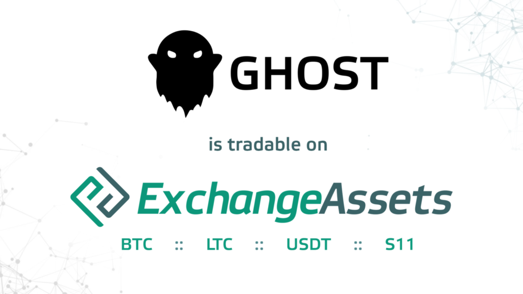 Ghost has been listed on ExchangeAssets, a Ukraine based hybrid system offering PoS Pools, bux (Active Ad System), interest and more! ExchangeAssets does not KYC, so users can enjoy the freedom of privacy while trading on the platform!