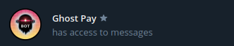 Now you need to DM the bot @GhostPayBot. In the bots DMs, send the /start command. This will create your account, and show a list of commands. You can see this list at any time by doing either /start or /help in DM.