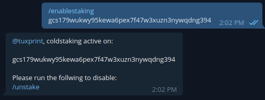 To start, use the /enablestaking command in the following format/enablestaking <pooladders>