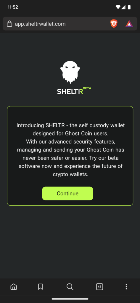 SHELTR is a Progressive Web App (PWA) wallet designed specifically for Ghost Coin. Our PWA is built to provide a fast, reliable, and engaging experience for Ghost Coin users.