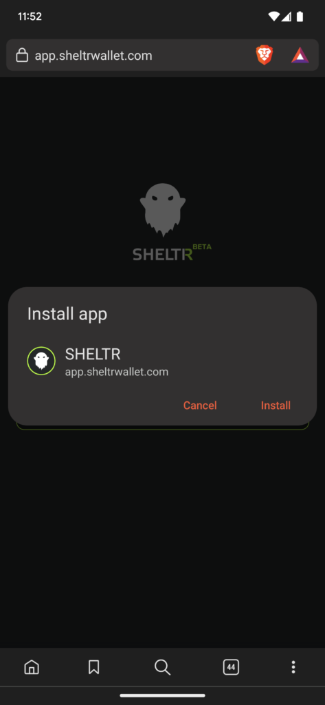 You should be prompted to install the app. This is the recommended way to use SHELTR as this gives a more native app feel.