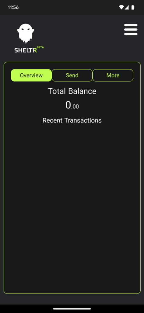 Load your SHELTR wallet, then tap the 3 lines in the corner to open the Settings menu.