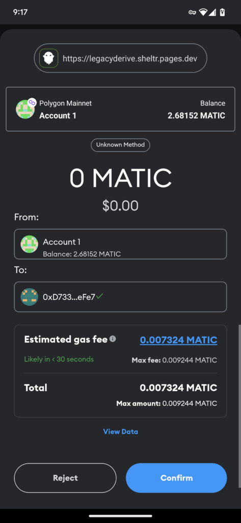 In your web3 wallet you can then confirm the transaction.